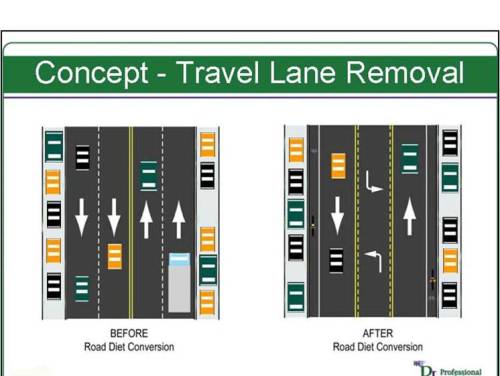 The RTP says, “All alternatives shall include and use potential options for traffic including but not limited to lane reduction or reassignment, improving motor vehicle safety, improving pedestrian access and safety, and improving/adding bicycle amenities on this corridor.”