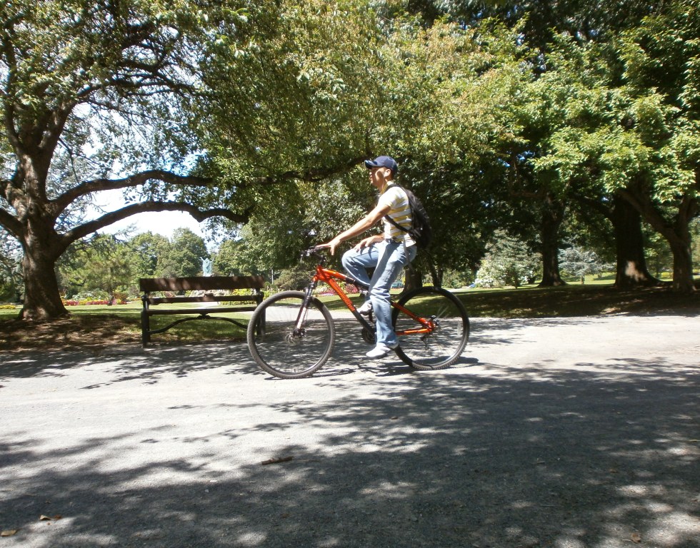 Three enjoying a slow ride through Washington Park.